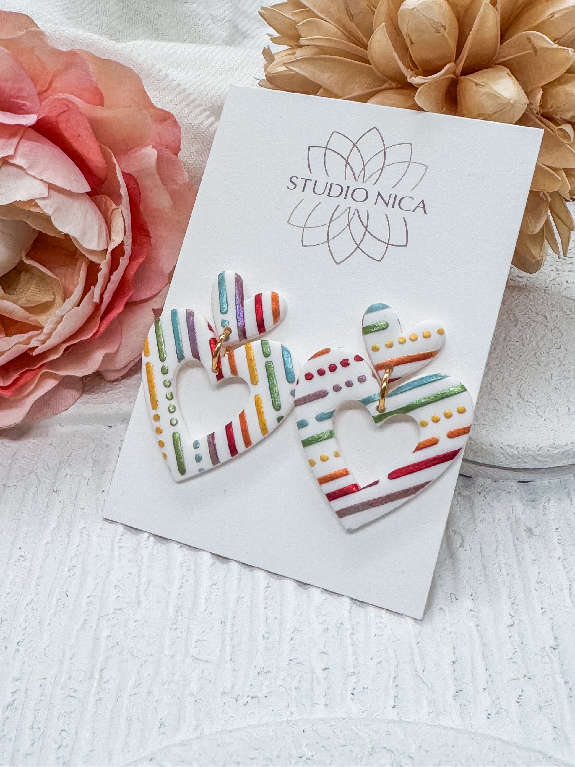 Queen of Hearts med härligt mönster i vackra regnbågsfärger! Finns i matt vitt och svart med resin.