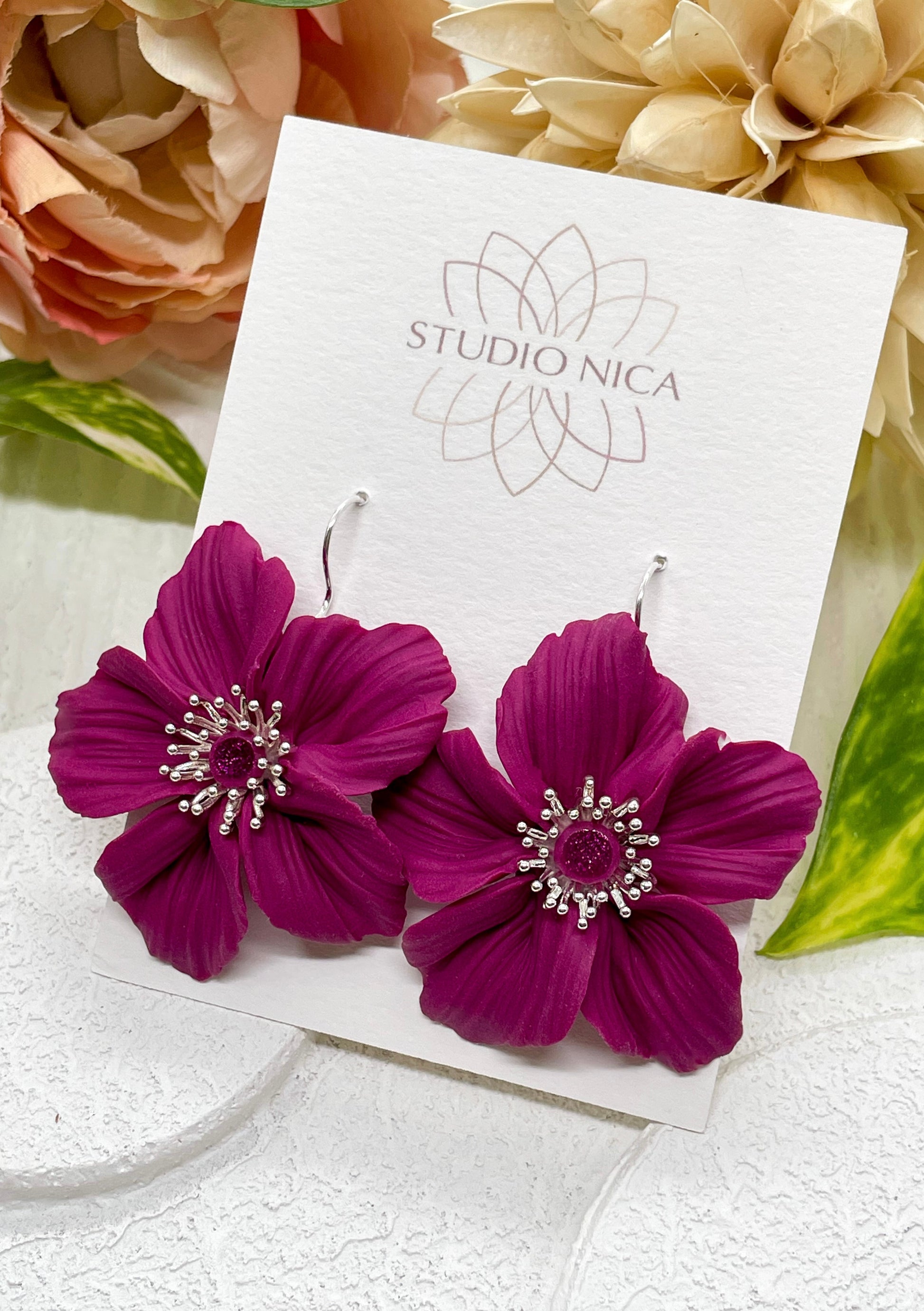 Solaris är Studio Nicas bestsellers, härliga handgjorda blommor med skimrande mitt, varje blad görs för hand och inga par blir exakt lika. Finns även som ring och halsband!