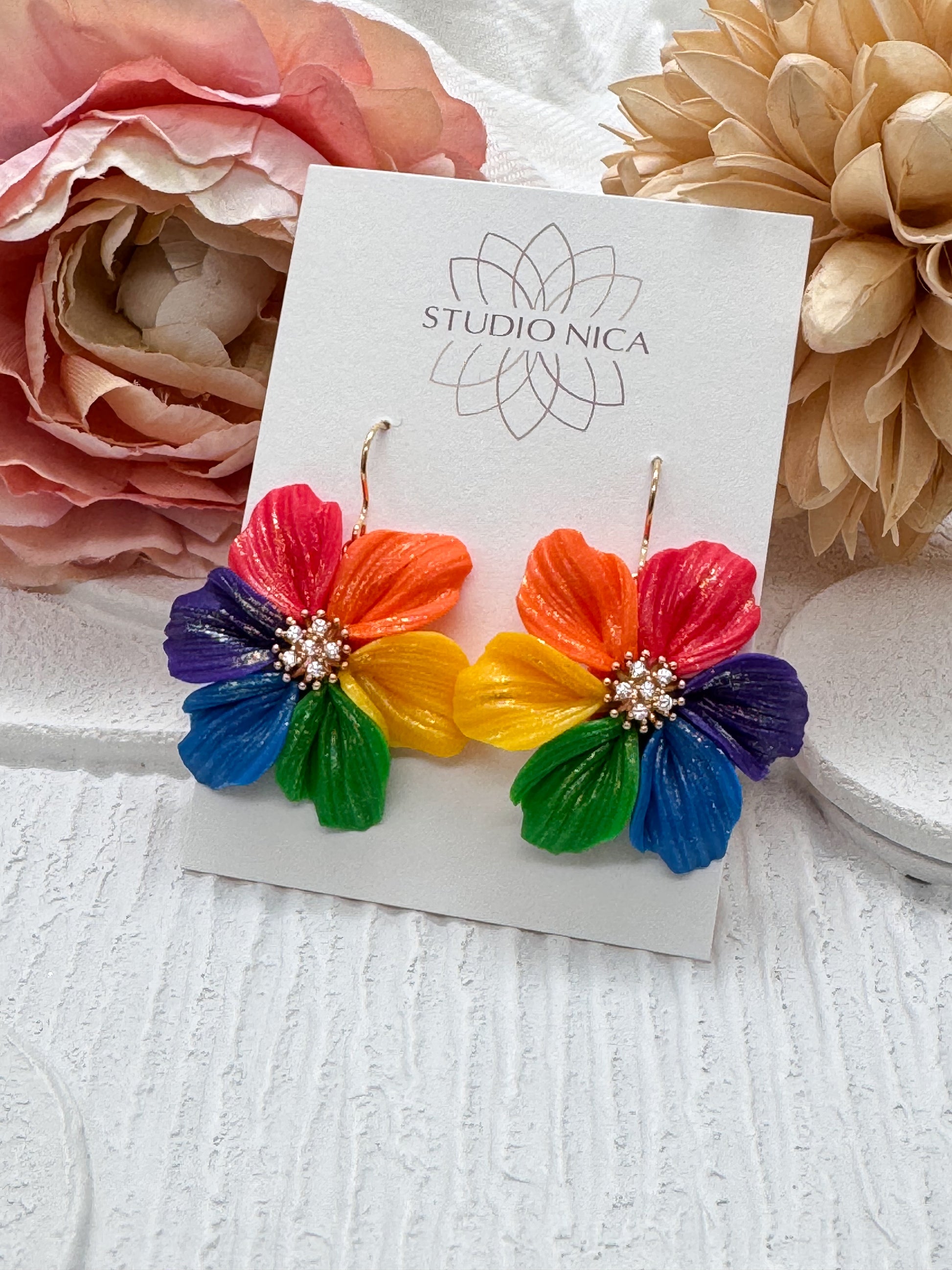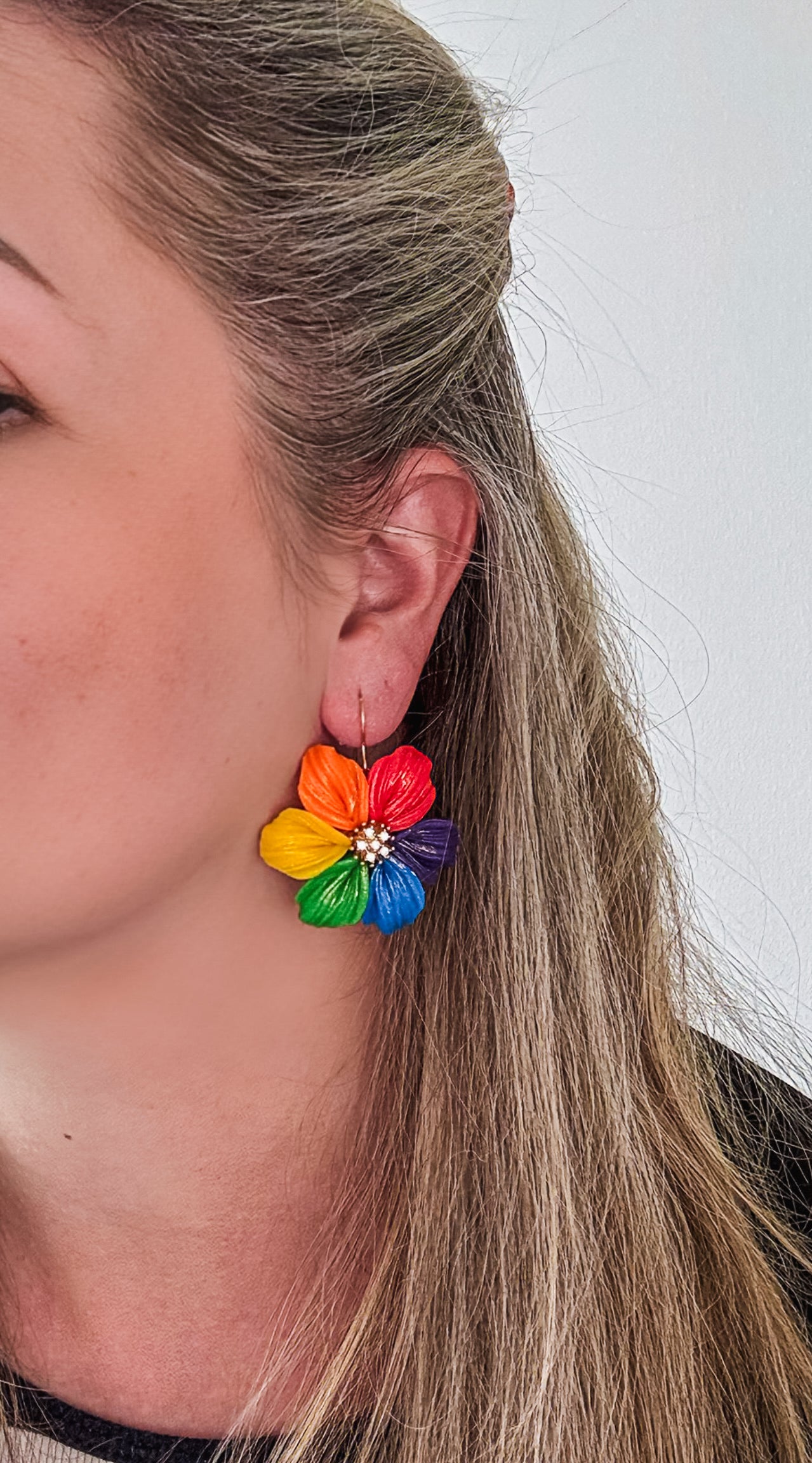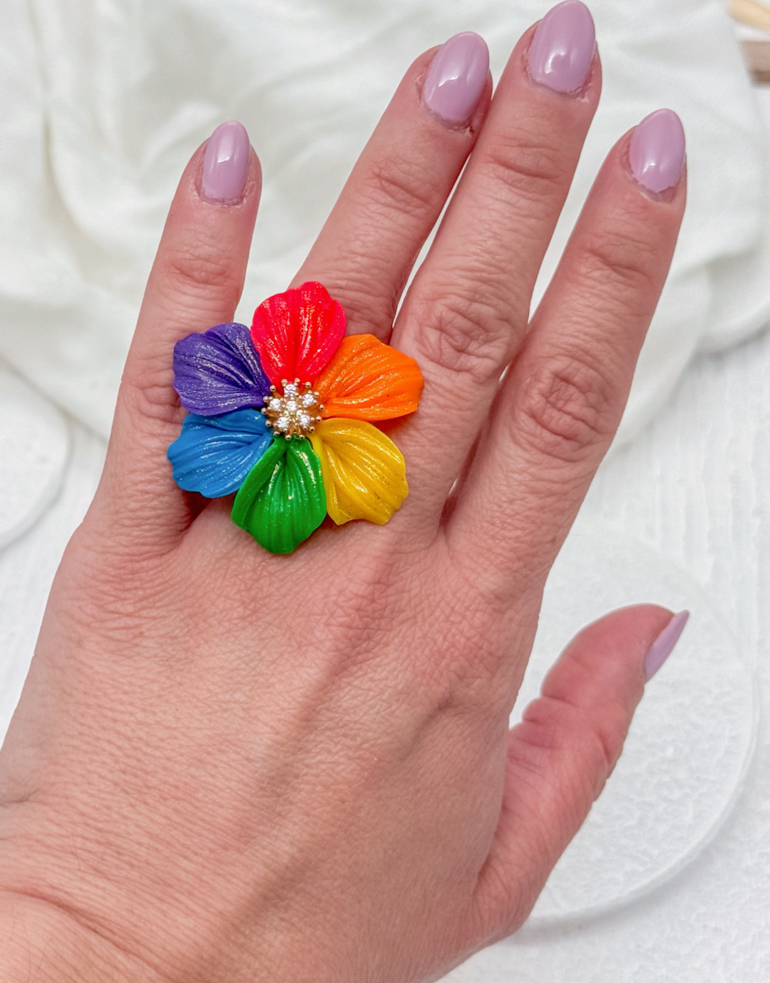 Vackra, vackra Solaris. Och här i årets Prideversion! Sex kronblad i regnbågens färger, handmålade med skimmer. I mitten en detalj med sex små cubic zirconiastenar. Perfekt till både Queens och allierade!